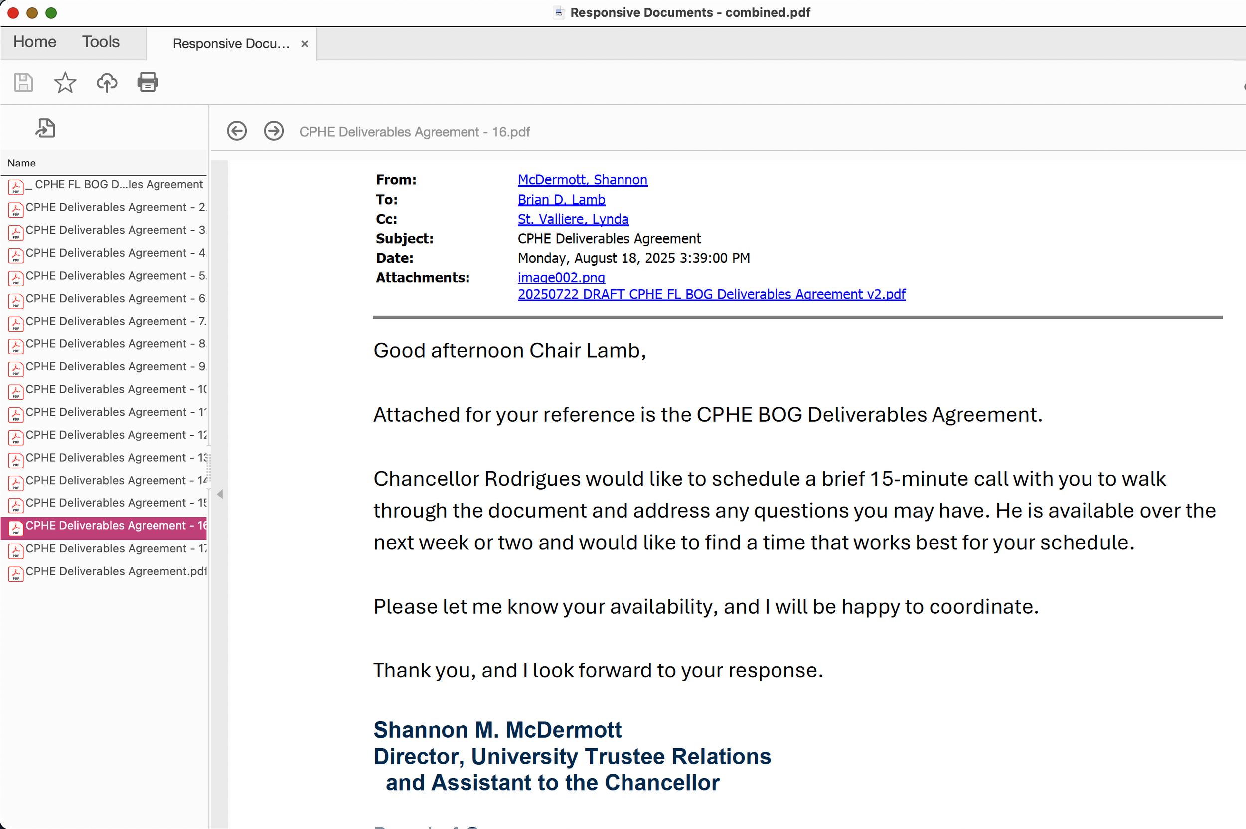 I have the email where the president wrote this person, directly, “no good deed goes unpunished.” The punishment the president referred to was objecting to helping Ron DeSantis seize control of higher education.